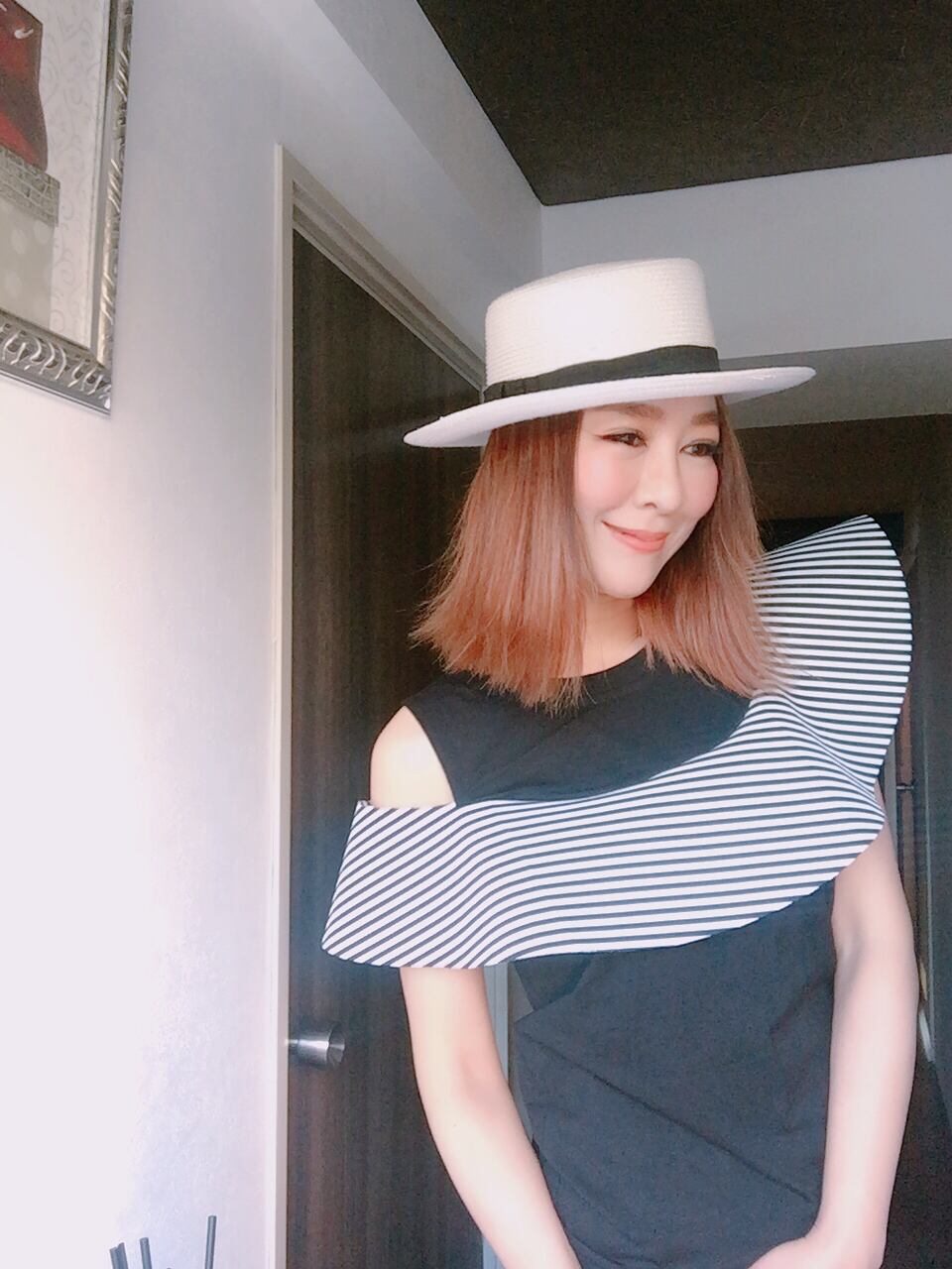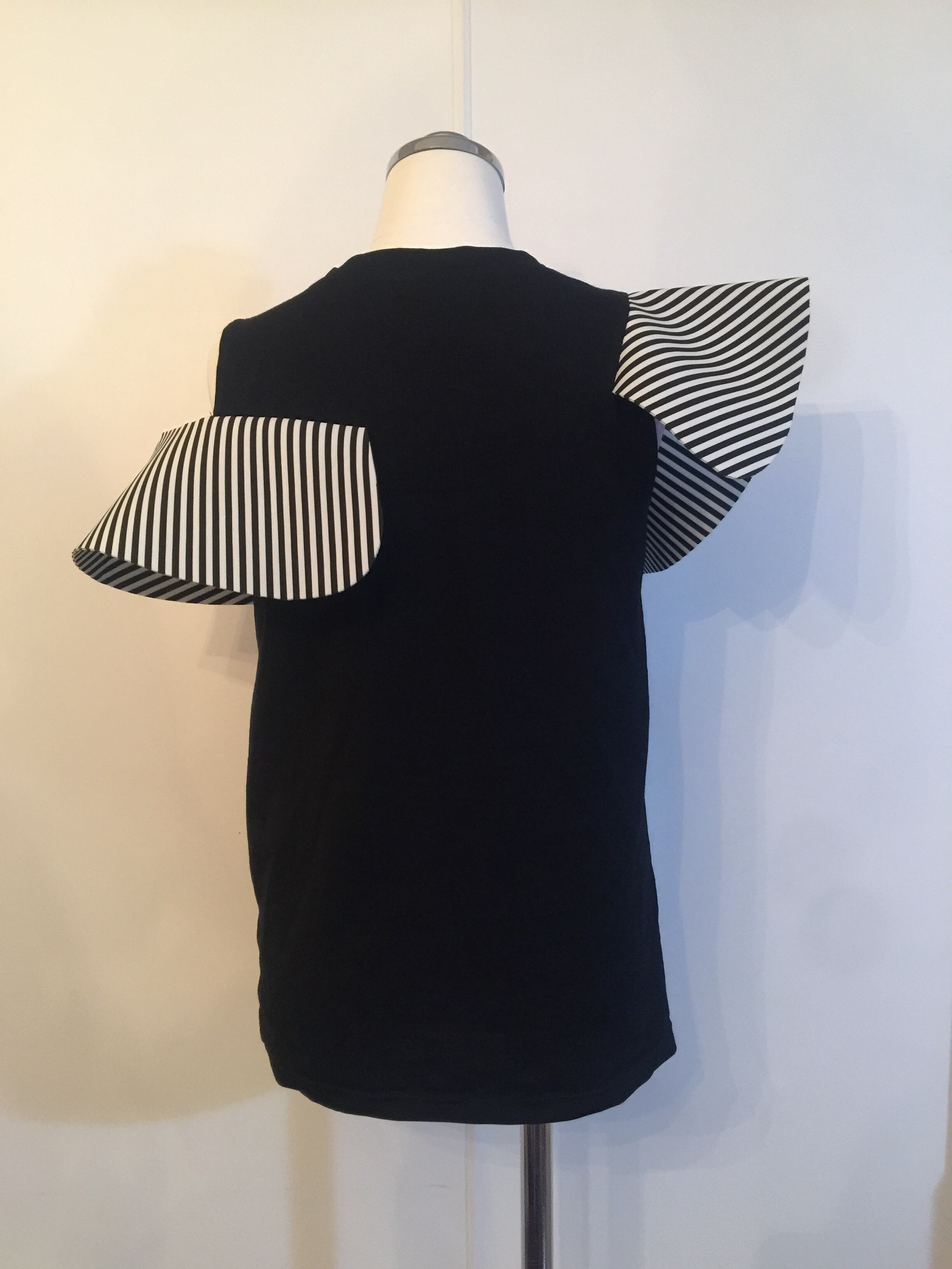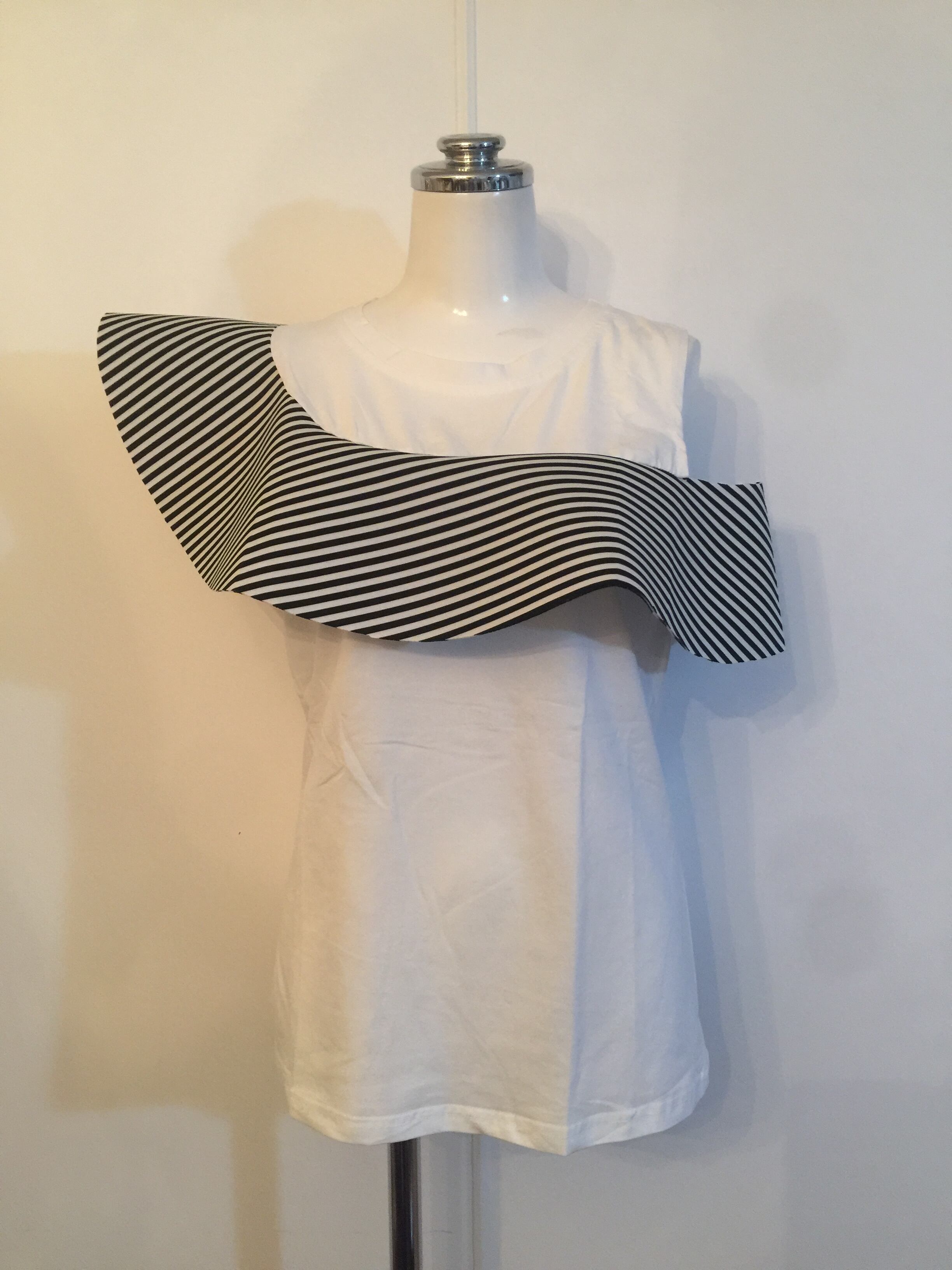 Tシャツにダイバー素材のハリのあるボーダーフリルが付いています。