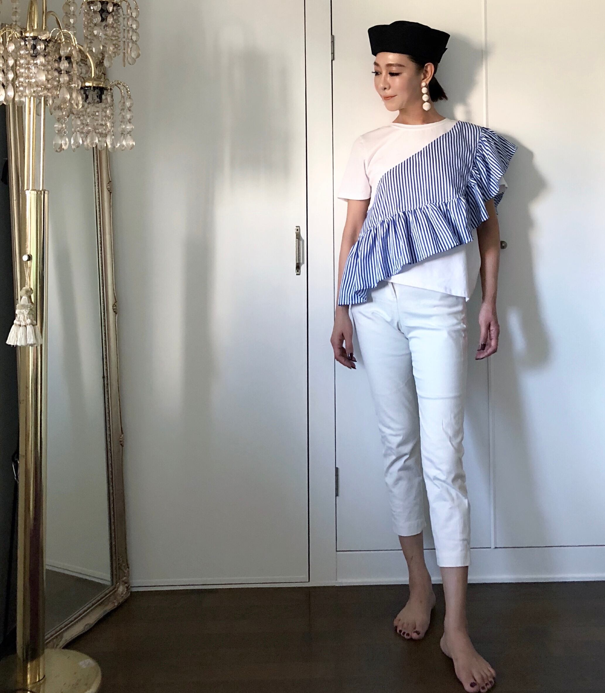 アシンメトリー フリルトップス