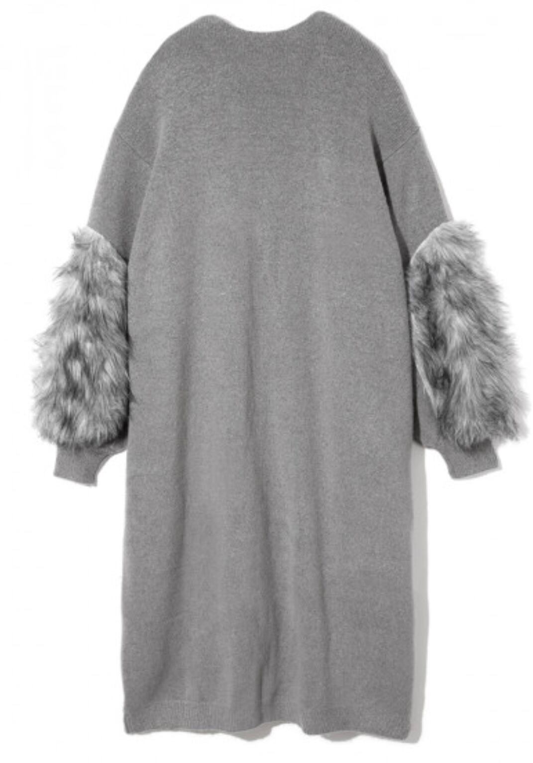 贅沢なボリュームのファーが可愛いニットロングカーディガンです。
