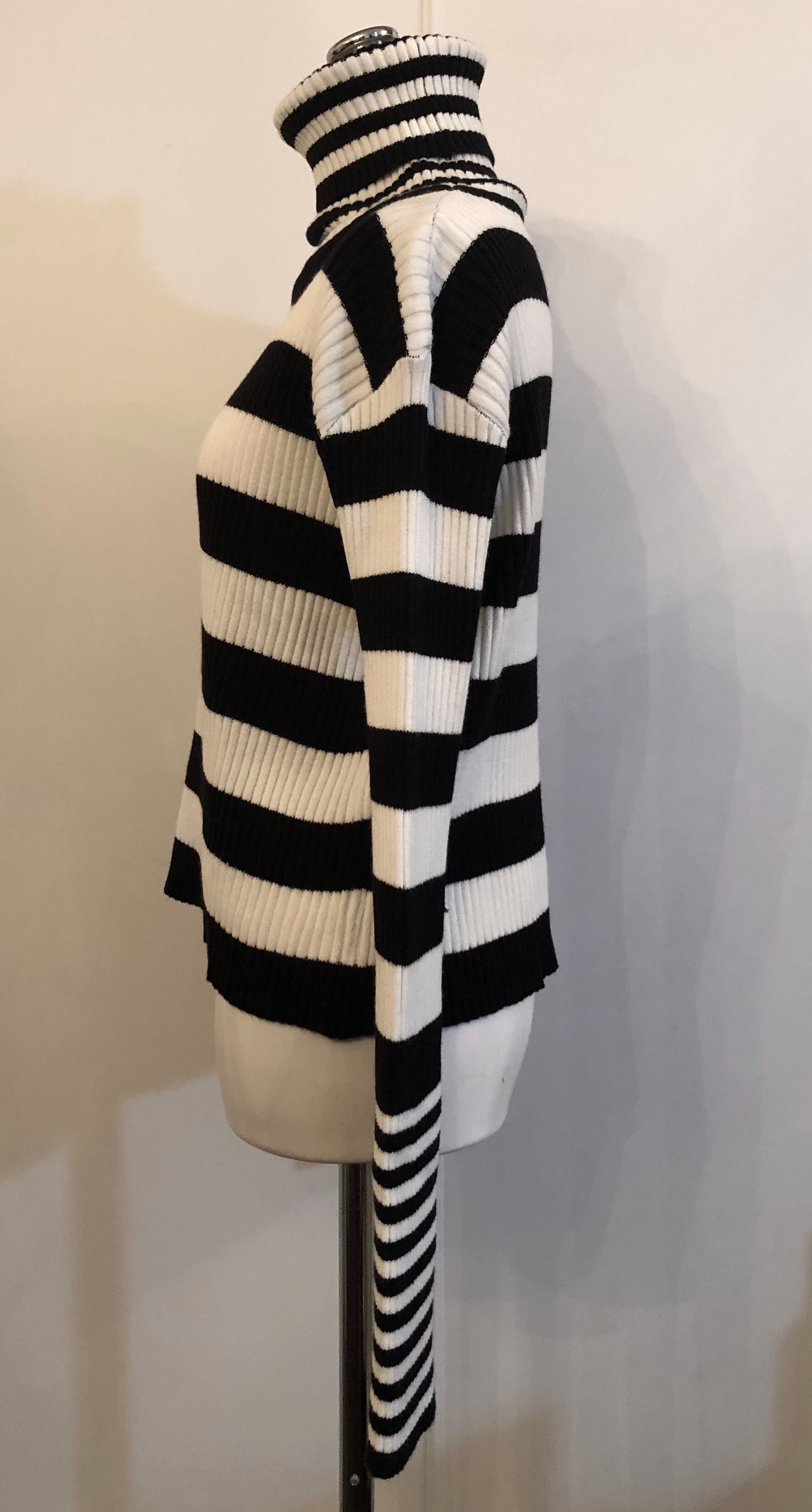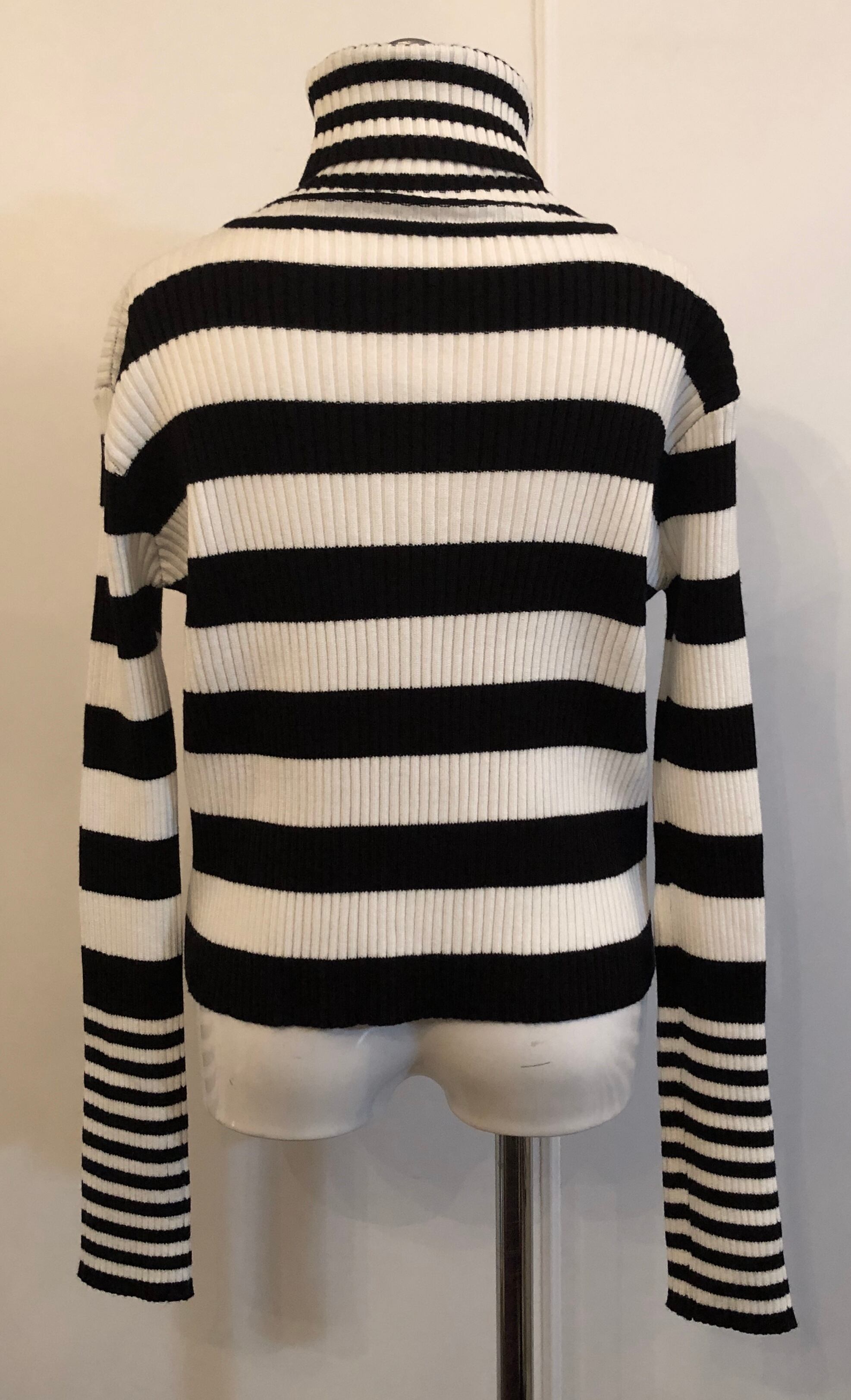 幅の違うボーダーが可愛いニットは着丈短めです。
