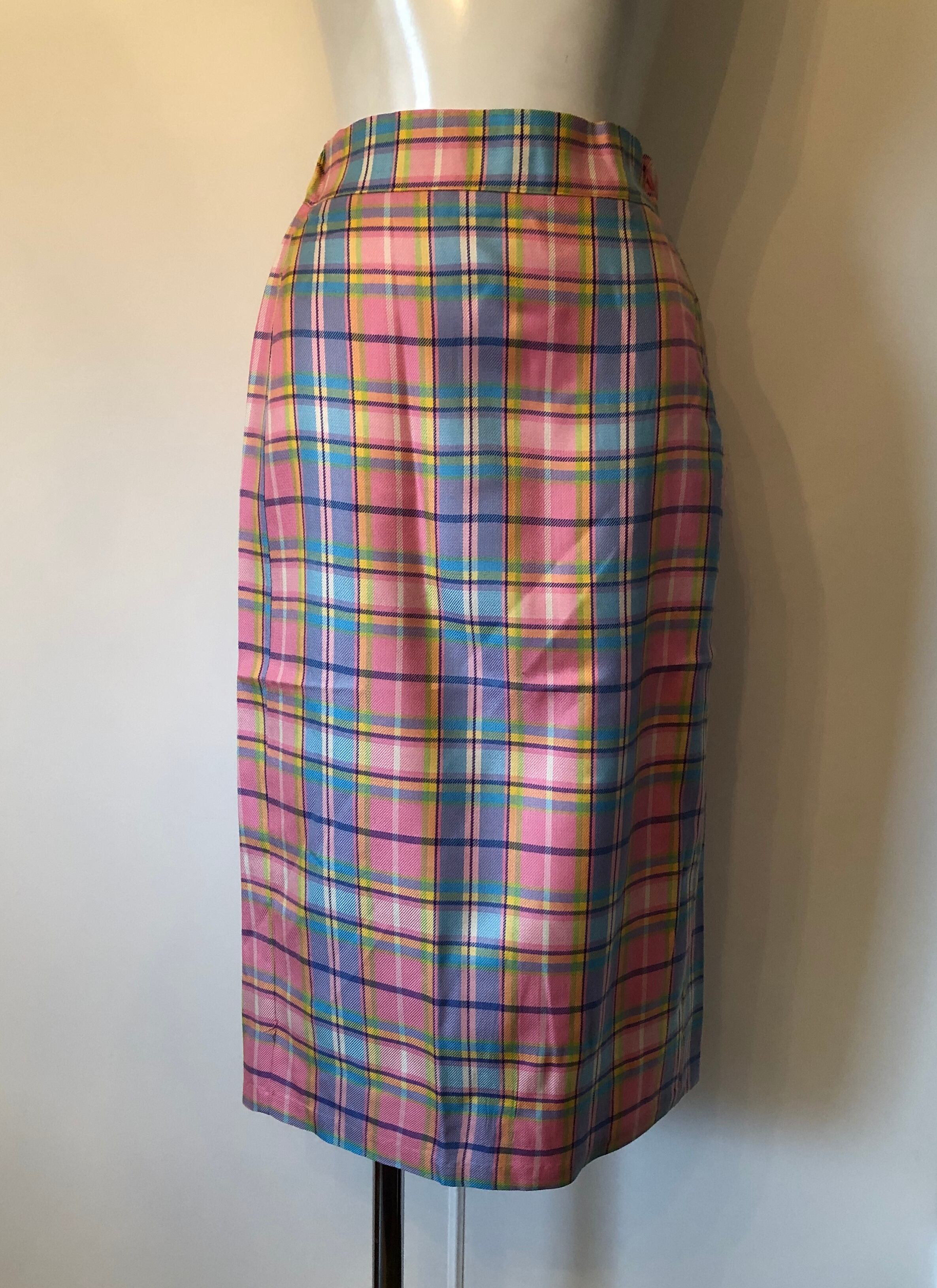 イエローもピンクも春らしいカラフルチェックスカートはウエスト後ろゴムで収縮性ありの楽チンスタイル