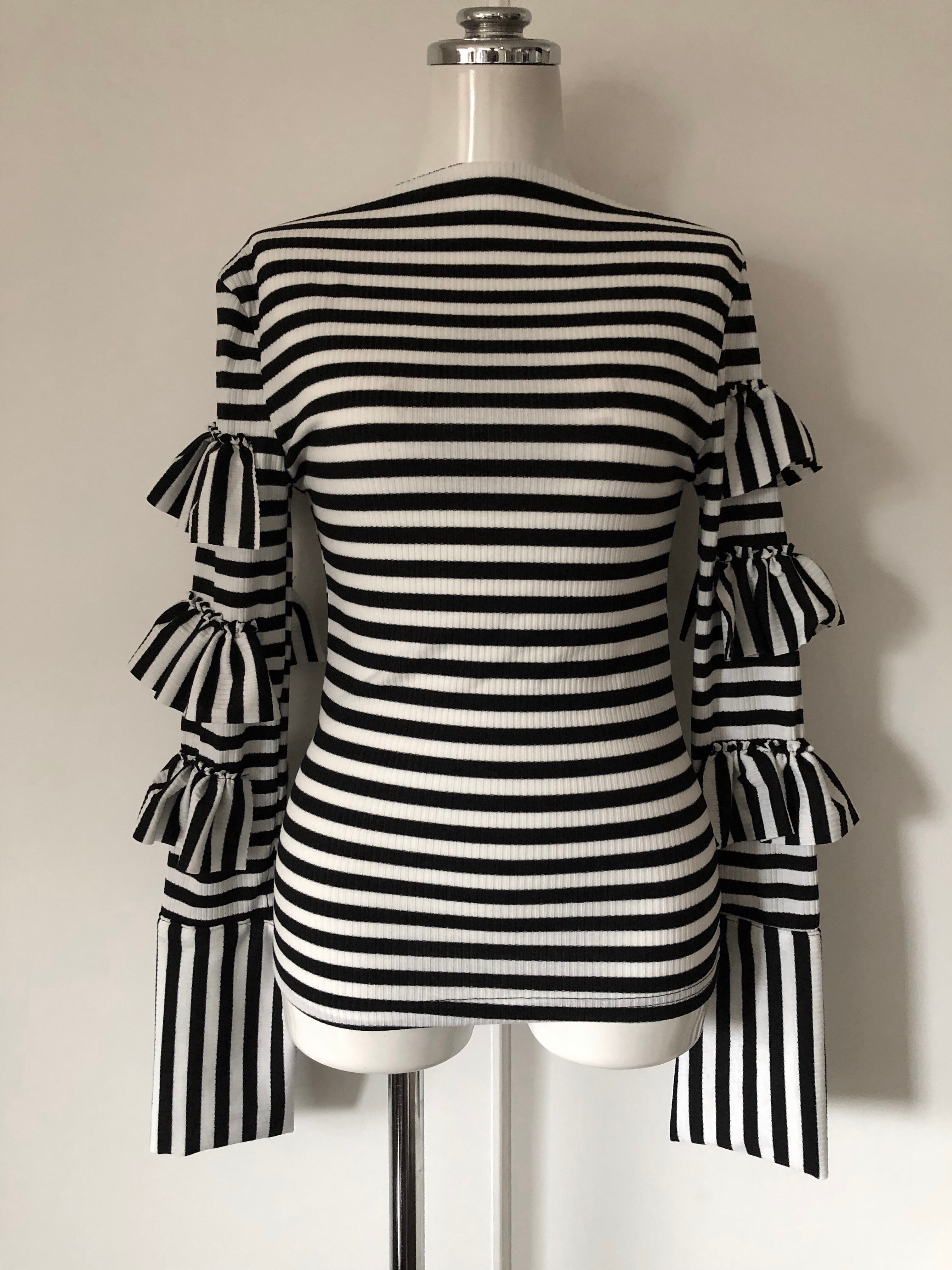 お袖の段々フリルが可愛いボーダートップス!