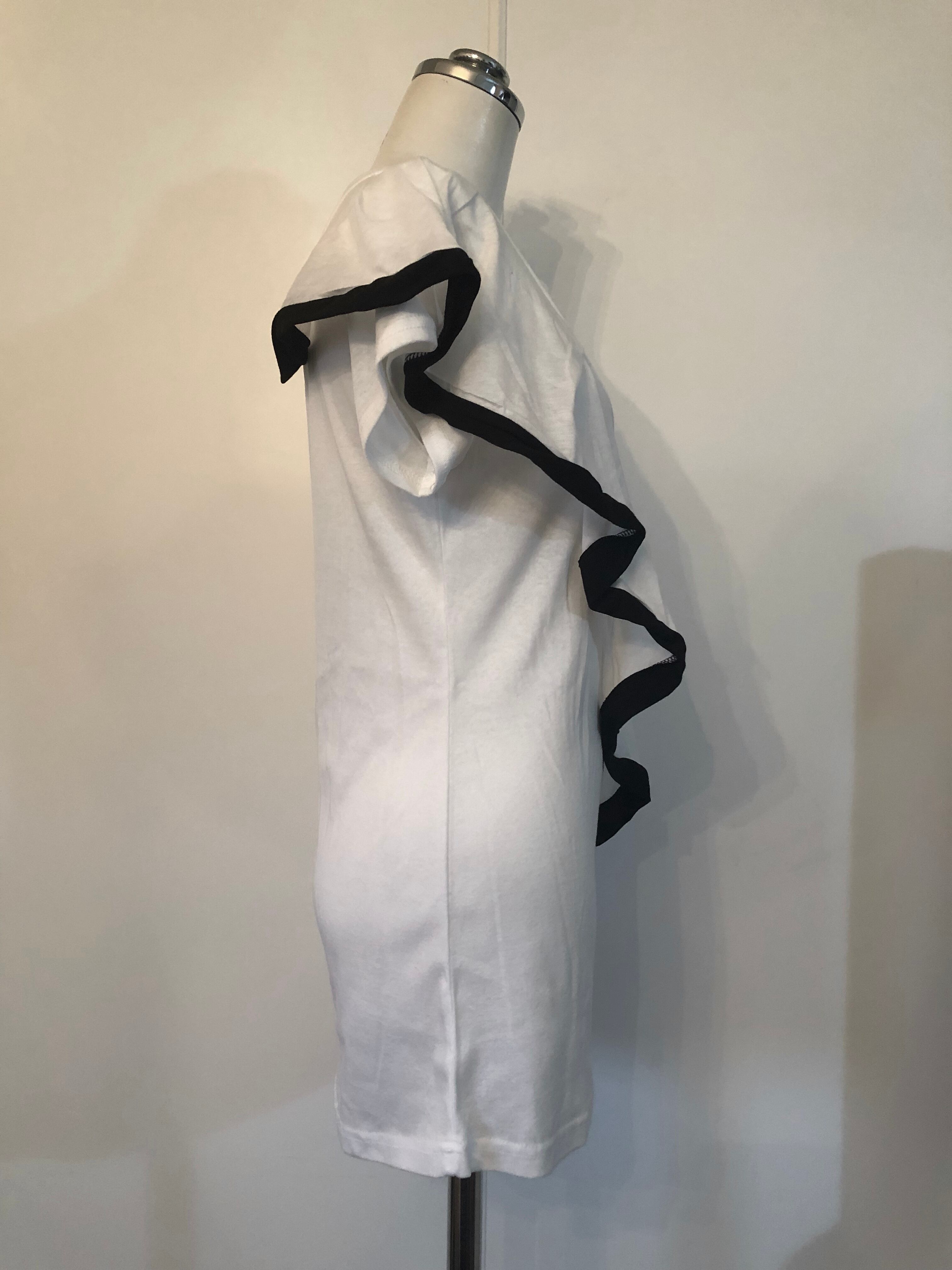 縦長ラインのスリム効果ありのシンプルtシャツです/
