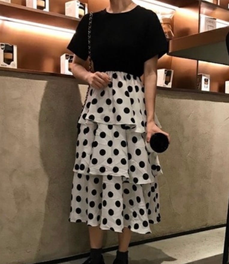 トップスは黒tシャツでウエストゴムのワンピースです!
