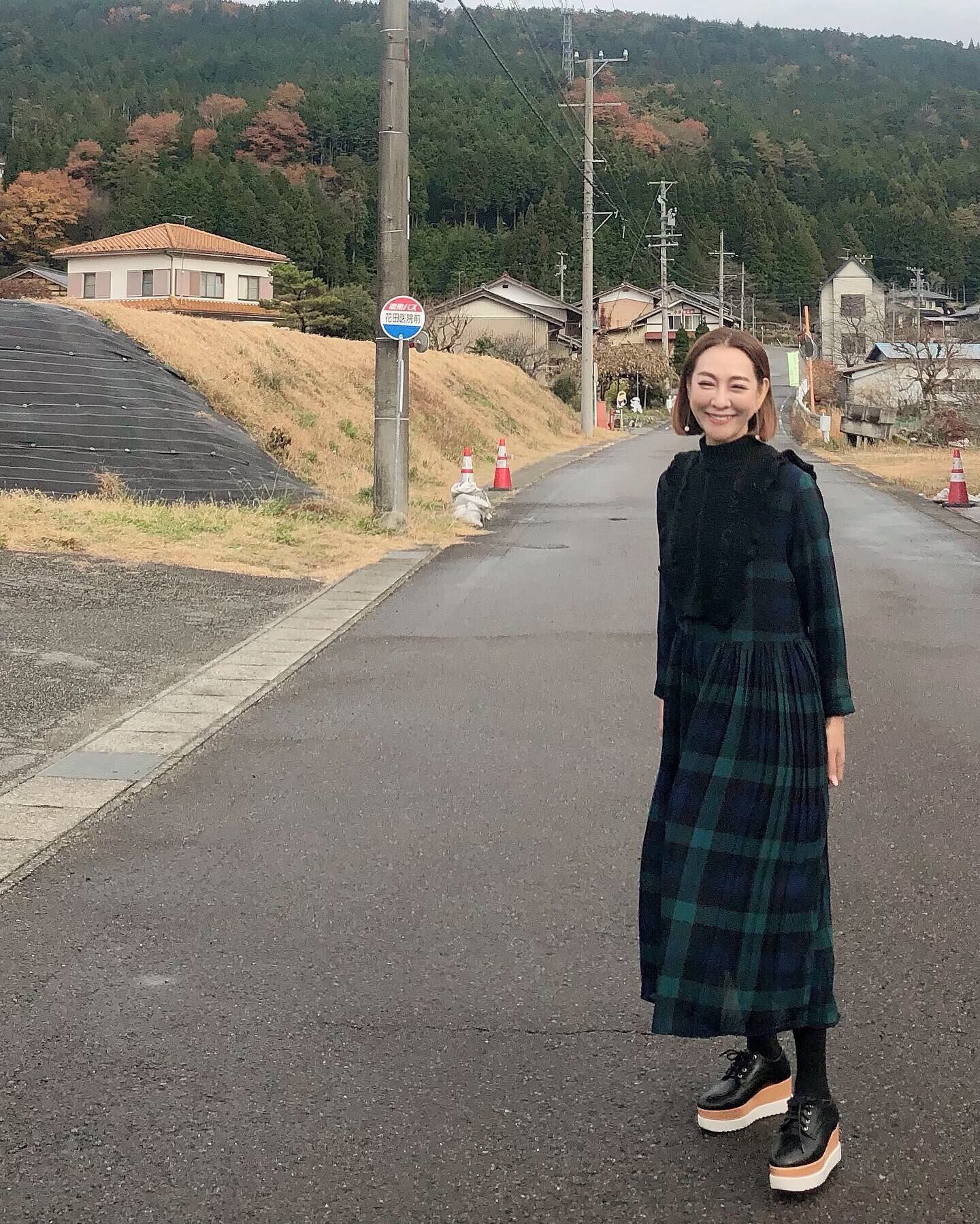 シフォンのタータンチェックワンピースと