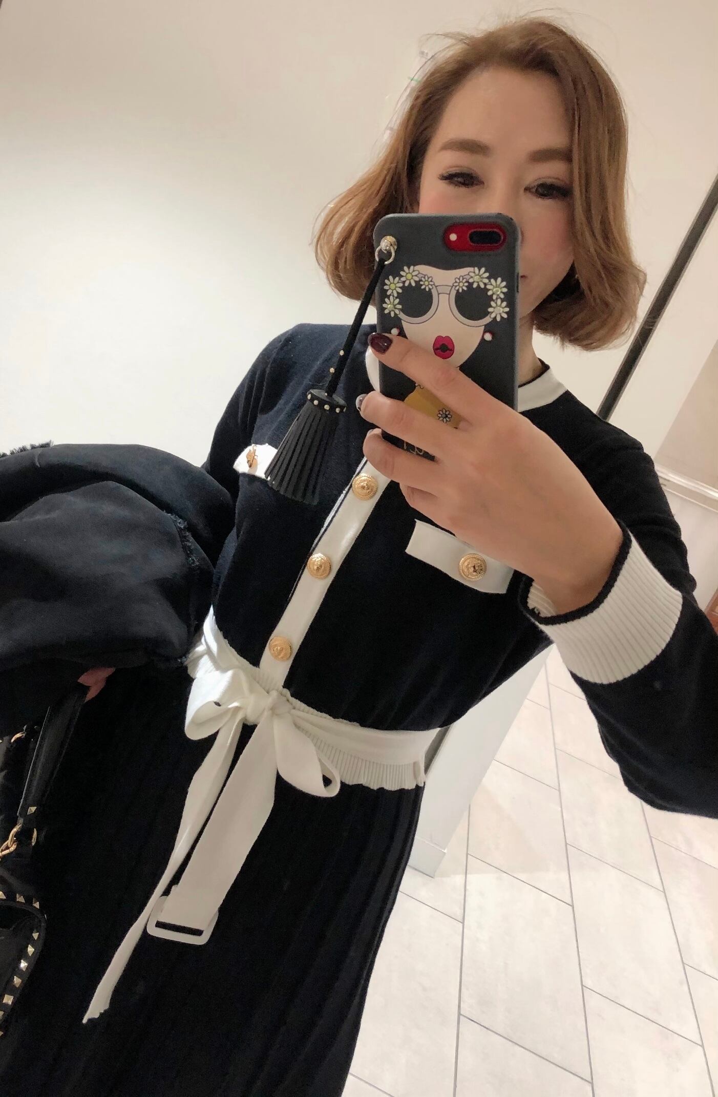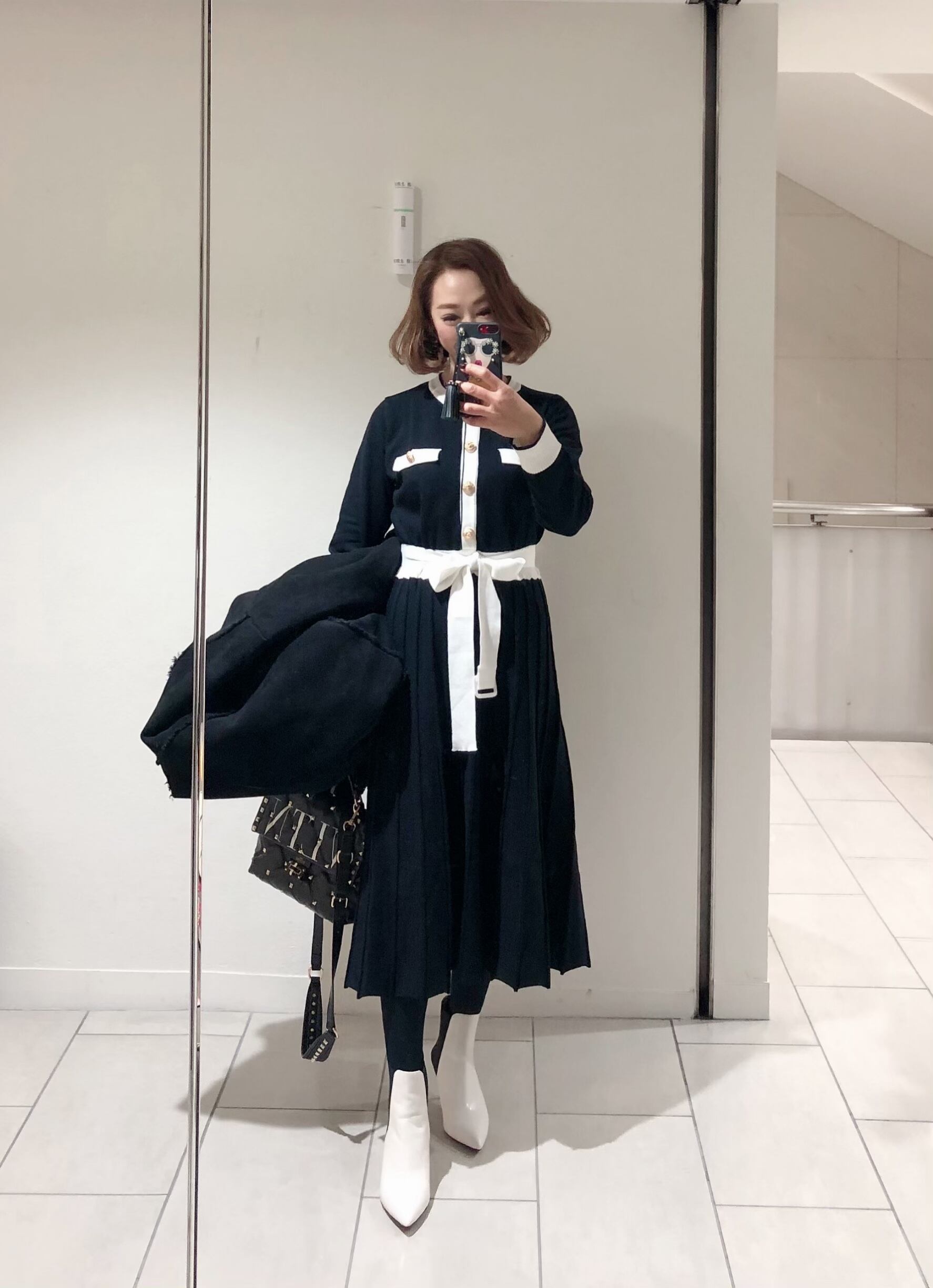 付属の白ニットベルトは長めなので二重に巻いたり