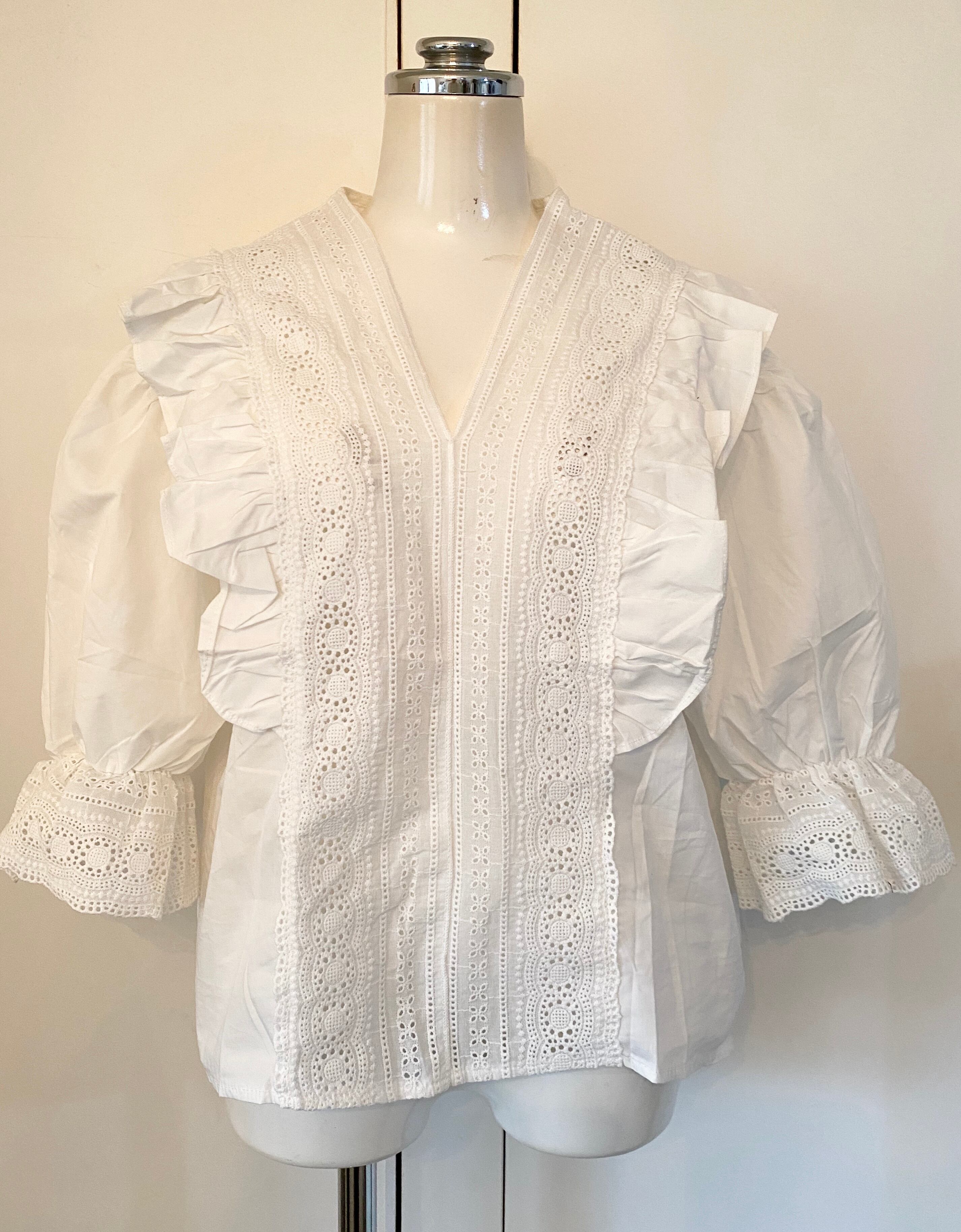 ボリュームのあるフリルとレースの組み合わせが可愛いブラウスです!