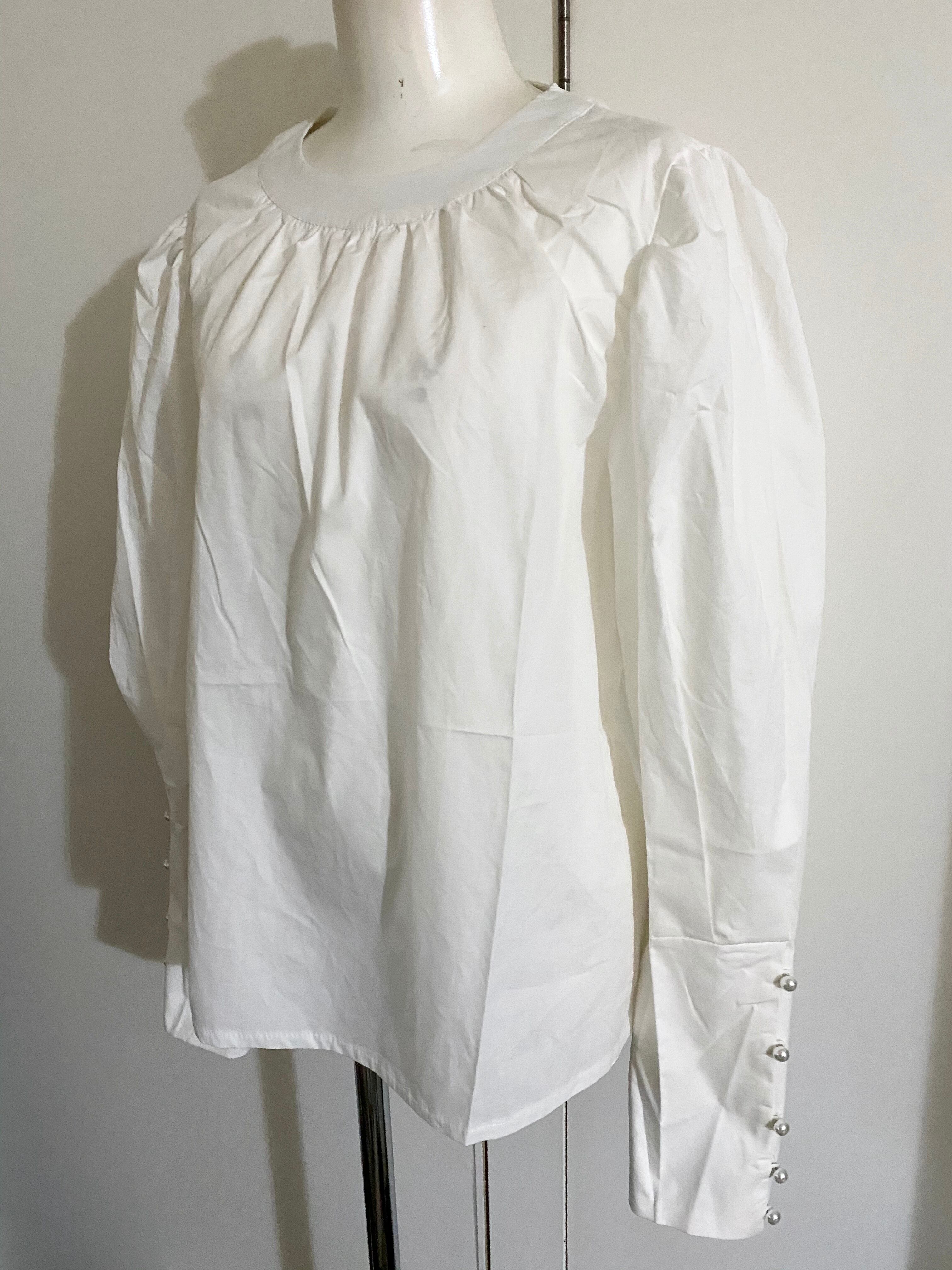 パール付きパフスリーブブラウス ホワイト 6500円→3250円