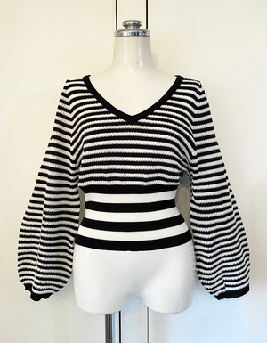 ボーダーパフスリーブニット