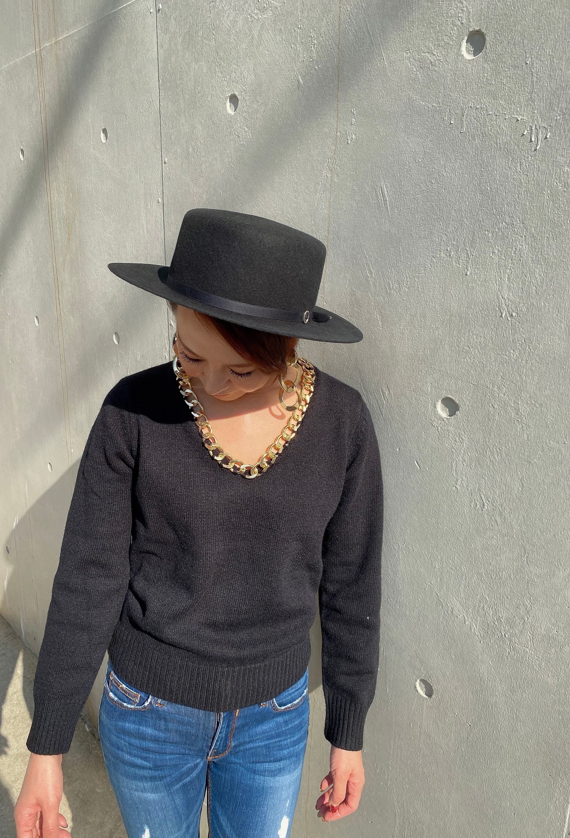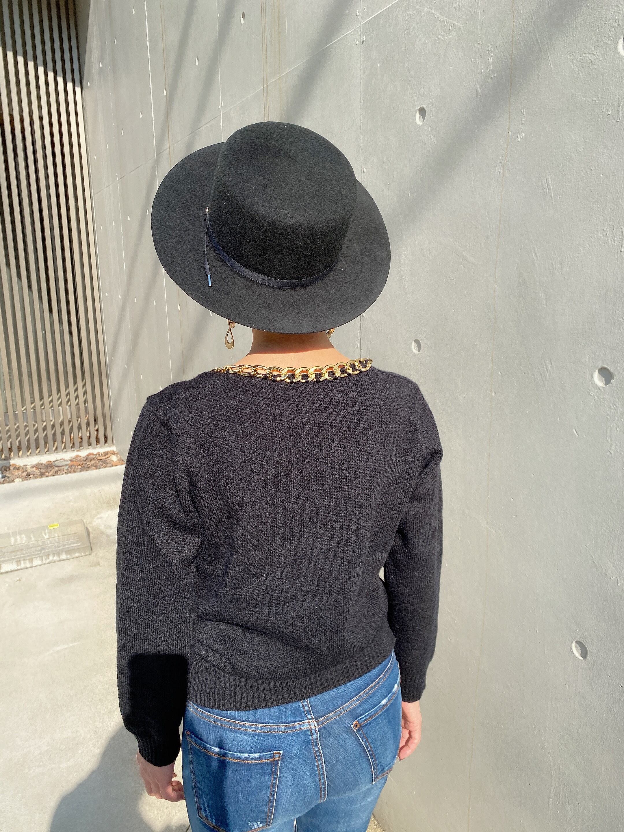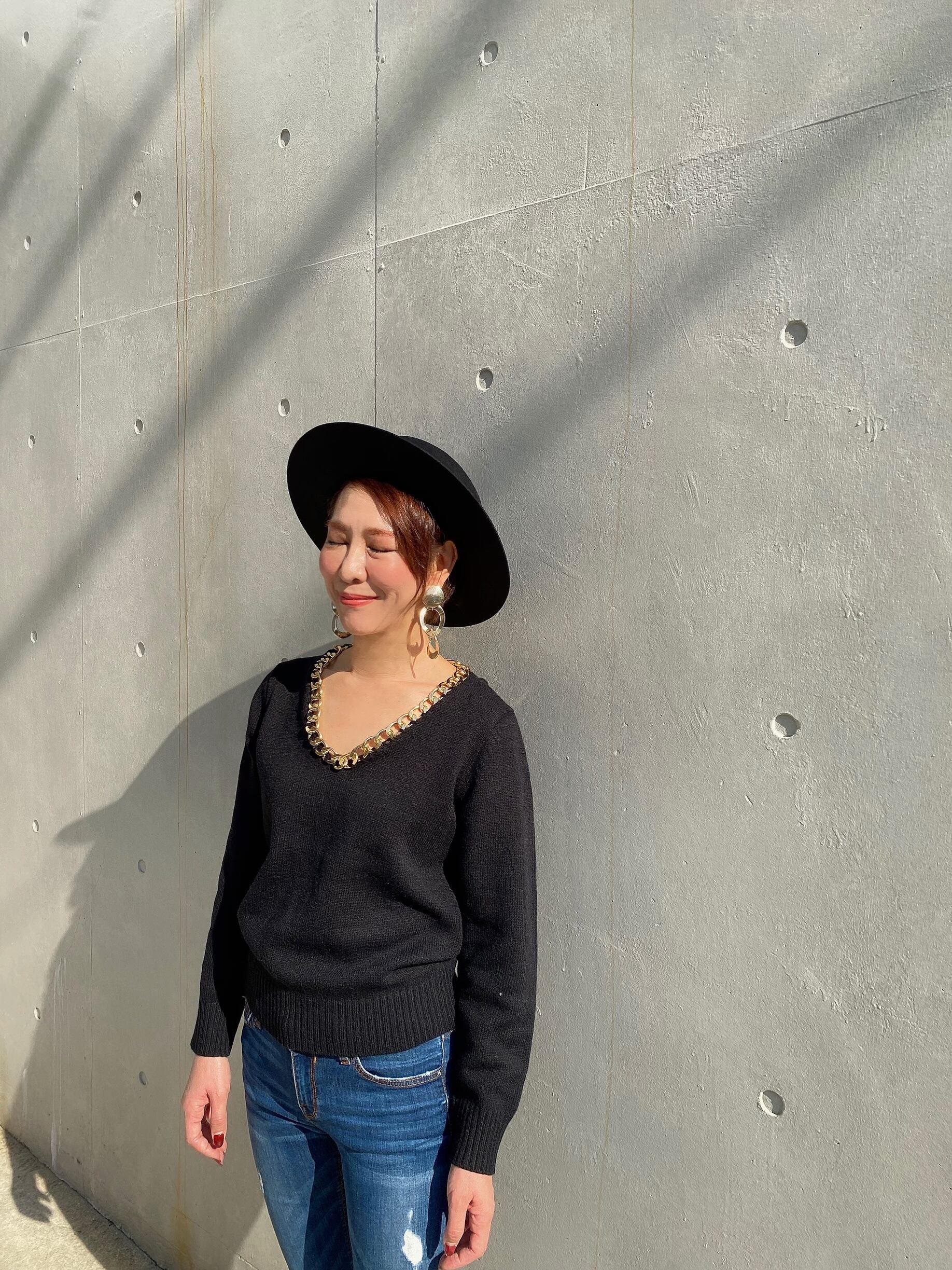 女性らしいVネックにゴールドチェーンが可愛いニットです!