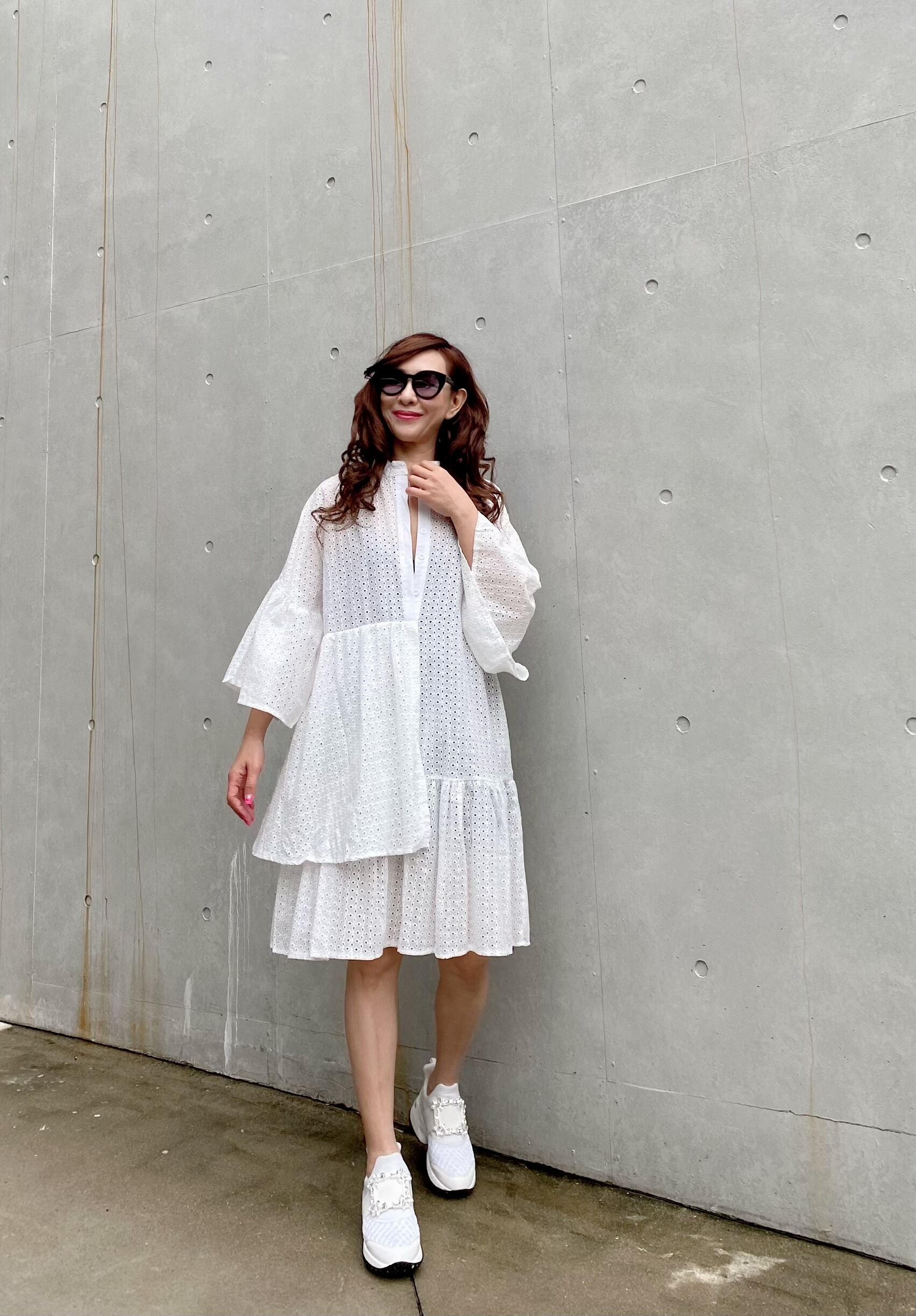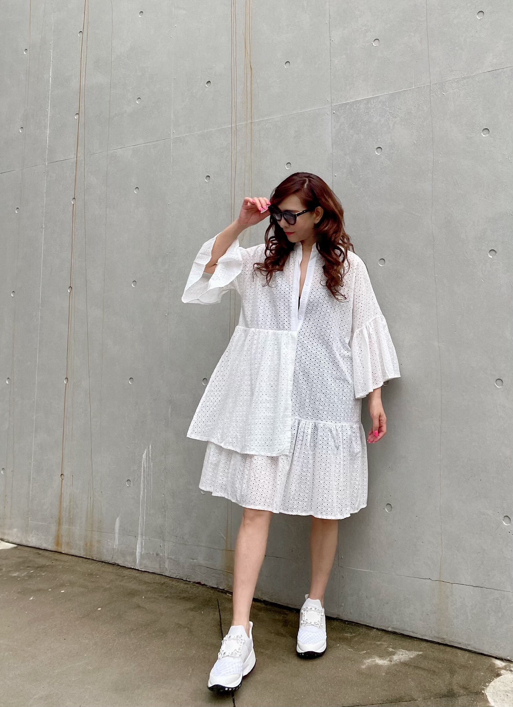 片側のみ前身頃が二重になっていてデザインも凝っています。