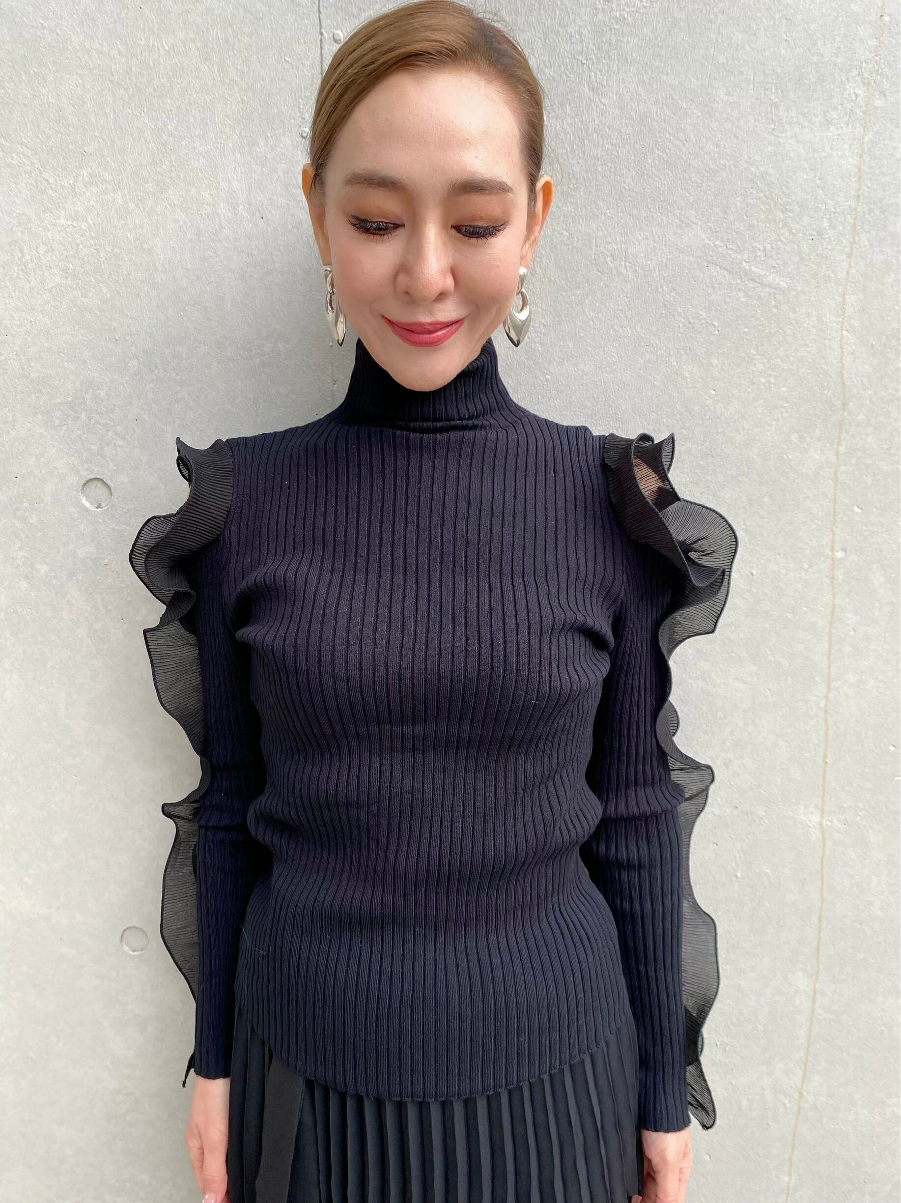 肩空きフリルニット